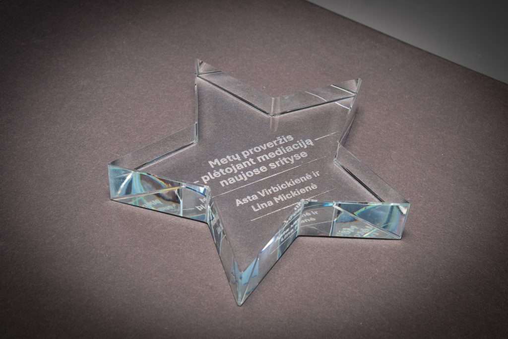„Metų proveržio plėtojant mediaciją naujose srityse“ įvertinimas, bendruomenės sprendimu, skirtas Valstybino patentų biuro mediatorėms Astai Virbickienei ir Linai Mickienei, už jų indėlį plėtojant mediaciją intelektinės nuosavybės srityje.