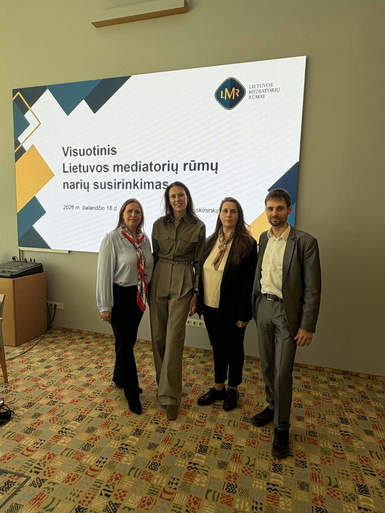 Balandžio 18 d. vykęs Visuotinis Lietuvos mediatorių rūmų narių susirinkimas subūrė gausią mediatorių bendruomenę apžvelgti 2025 metais vykdytas veiklas ir priimti sprendimus svarbiausiais asociacijai klausimais. Susirinkime gyvai dalyvavo arti 100 LMR narių, o daugiau kaip 200 mediatorių savo balsą atidavė iš anksto balsuodami raštu.