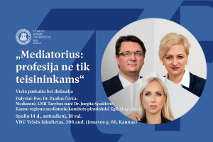 Vytauto Didžiojo universiteto Teisės fakultetas jungiasi prie LMR Mediacijos savaitės 2025 iniciatyvų ir kviečia į atvirą paskaitą „Mediatorius: profesija ne tik teisininkams“.